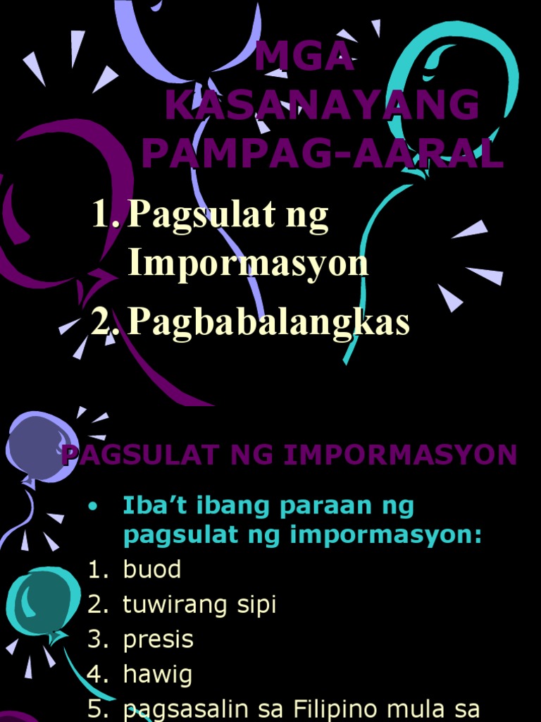 Tentatibong Balangkaspptx from ACC 2015149794 at Don Honorio Ventura Technological State University. Ang balangkas ay isang skeleton ng anumang Hakbang sa Pagsulat ng Kinakailangang makatipon ng mga materyal at datos na kakailanganin sa paglinang ng aanalisa sa mga nakuhang datos sapagkat may nakukuha tayo na maaaring gasgas na impormasyon na paulit-ulit na nating naririnig o nababasa subalit kapag binigyan ng panibagong 3. Pagbabalangkas pagbuo ng sistematikong paghahanay ng mga ideya upang malinaw ang kanilang ugnayan.