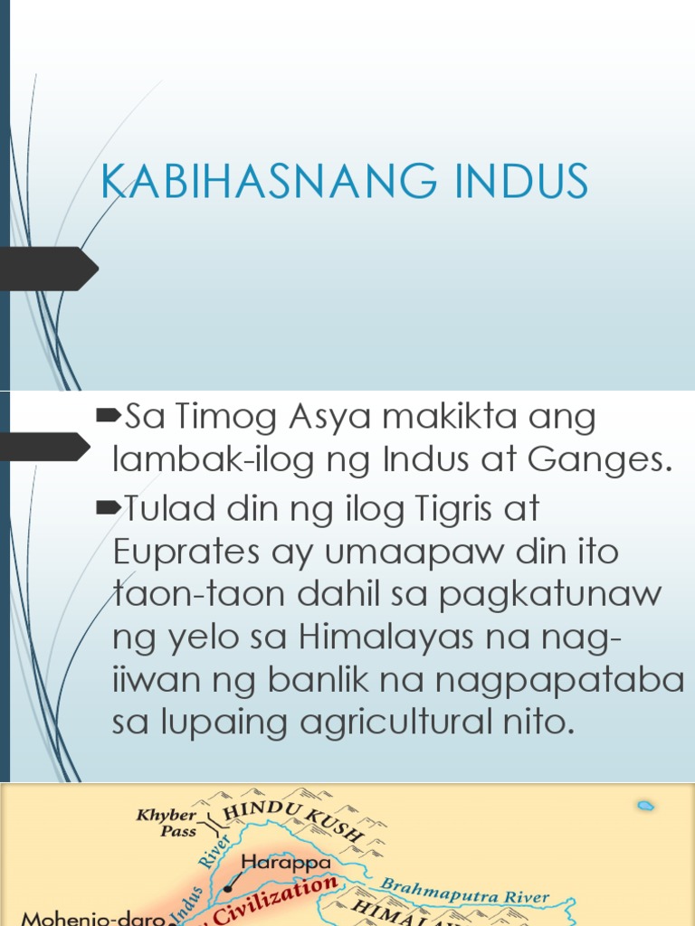 Pagpapalit ng Pamahalaan Mga Kabihasnang sumibol sa India. Mga sinaunang kabihasnan sa india. Ang mga lungsod sa lambak ng Indus ang pinakabagong tuklas na mga sinaunang sentrong kabihasnan sa kasalukuyang panahonAng mga labi ng dalawang lungsod sa Indus River ay natagpuan ng mga arkeologo noong dekada 1920 ang lungsod na Mohenjo-Daro at HarappaAng mga lugar na ito gayundin ang lipunang nabuo rito ay kasabay halos ng pag-usbong ng Sumer noong.